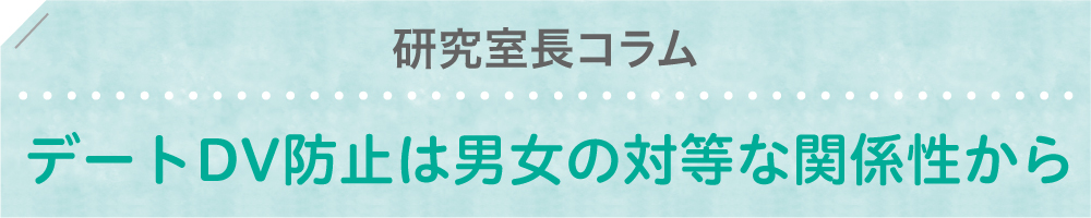 こうしたDV、デートDVやストーカー行為の理解には、人と人の「関係」についての意識や考え方に立ち戻ることが大切です。女性よりも稼ぎのある男性は優位な振る舞いが許される、などの考え方が無意識のうちに家族や恋人同士の関係に影響を与えています。その結果、一方が過度の従順さを求められ、不本意であってもそれに応え続けると、「関係」のあり方にゆがみが生じます。DVやデートDVには身体的、性的な暴力だけでなく、このような精神的、経済的な暴力などの多様なかたちの暴力が潜んでいます。