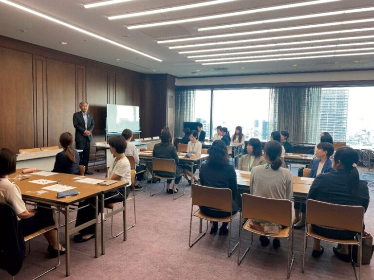 女性登用が進み、本部でも女性グループリーダー(GL)が増える中で、異なる分野の業務を担当するリーダー同士が円滑に業務を遂行し、横の繋がりを強化することを目的として、令和6年度から本部女性GLネットワーキングセミナーを開催しています。このセミナーでは、役員による講話やディスカッションを行い、また懇親会を通じてリーダー同士の繋がりを強化し、役員との交流を通じて意識向上を図っています。